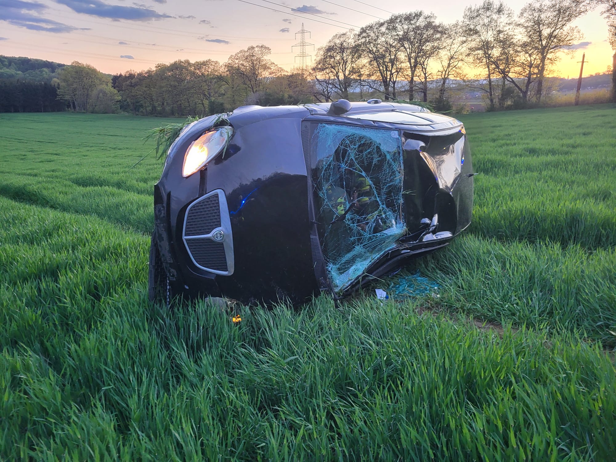 T03 Alarmierung. Ein PKW hat sich auf der Landesstraße L602 mehrfach überschlagen.